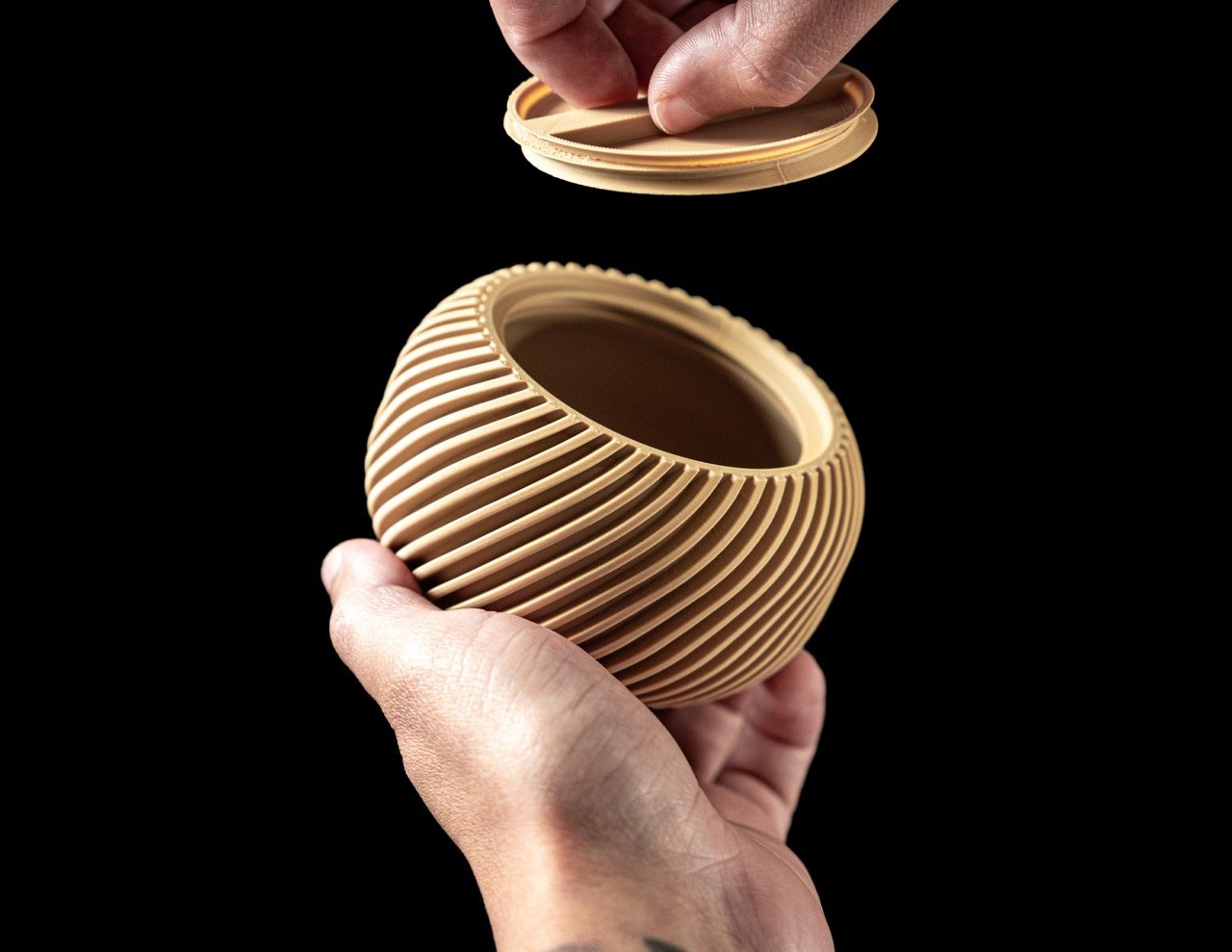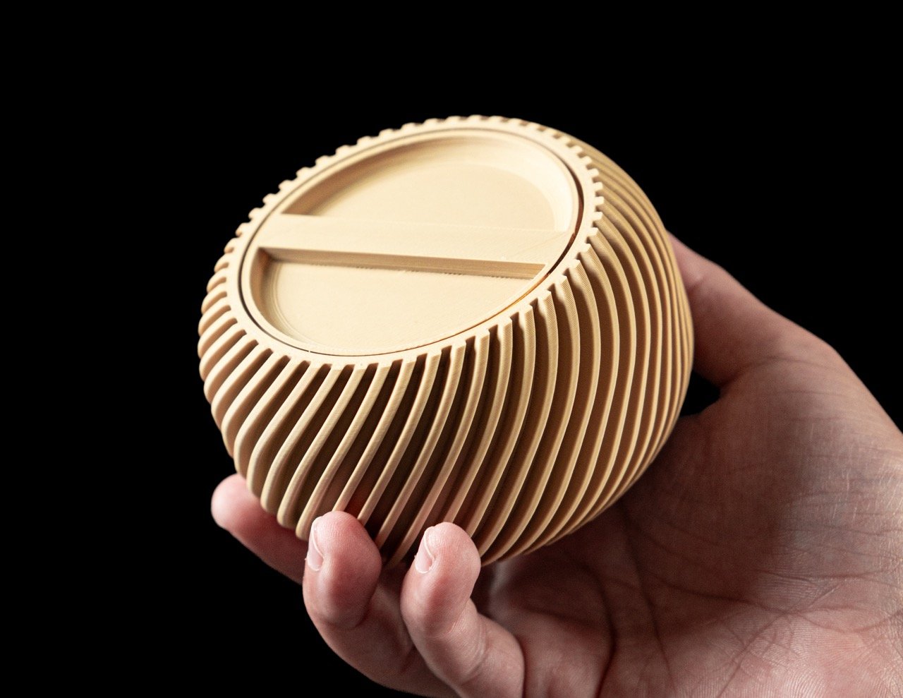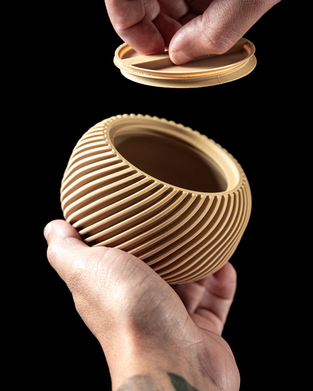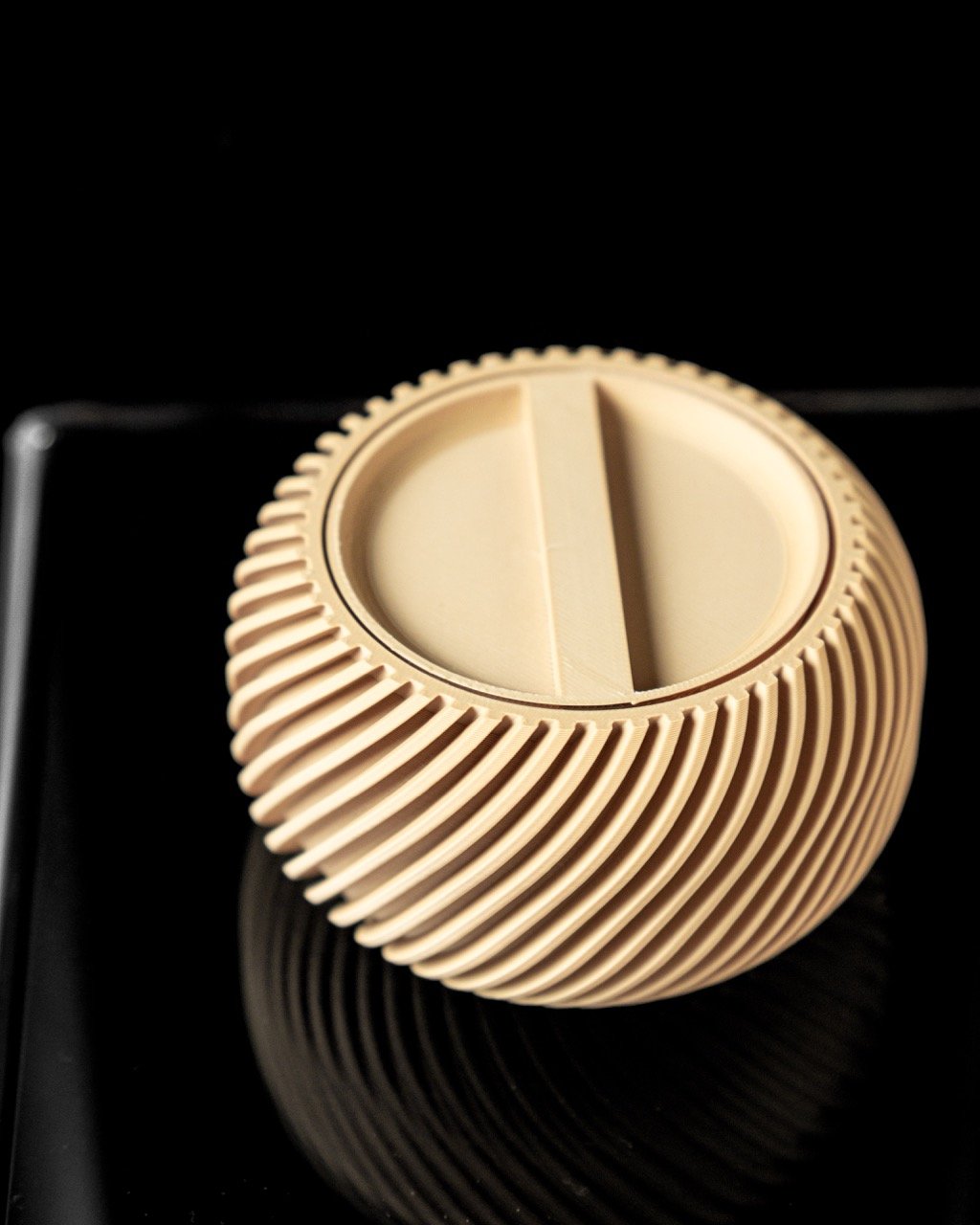 Šis mazais konteinerītis ir kompakts, bet pārdomāts aksesuārs ikdienai. Tā noapaļotā forma ar spirālveida rievām rada patīkamu vizuālo un taustes pieredzi. Cieši pieguļošais vāciņš pasargā saturu, bet izmērs padara to ideāli piemērotu sīklietām – rotaslietām, medikamentiem, tējai, USB zibatmiņām vai pat bērna pirmajam zobiņam.